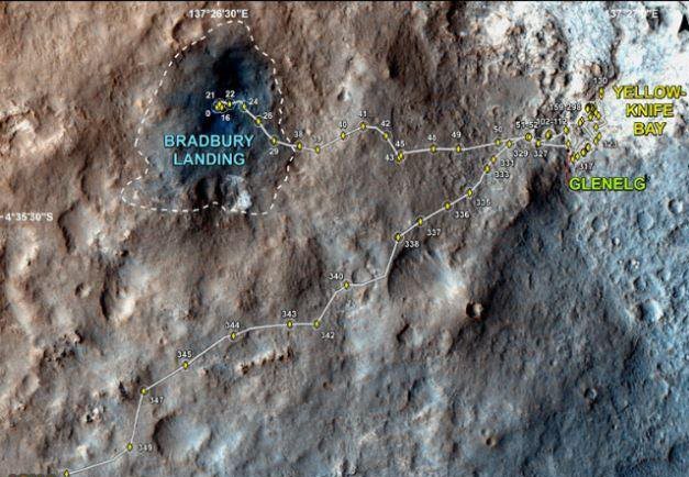 تمام نقاطی که کنجکاوی از زمان فرودش تا یک آگوست 2013 رفته است